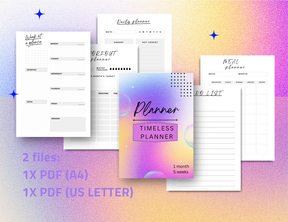 Elevate your organization game with our Timeless Planner, a versatile tool designed for both print and digital use. Whether you prefer the feel of paper or the convenience of apps like GoodNotes, this planner adapts to your needs. With its undated format, you can start planning whenever you're ready and reuse it endlessly.